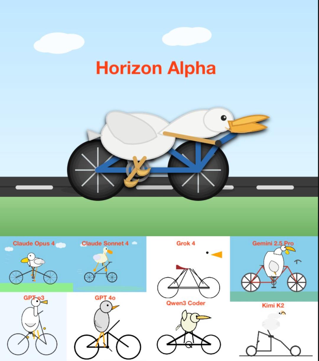 「骑自行车的鹈鹕」,是在旧金山 AI 工程师世博会(AI Engineer World’s Fair)上,Simon Willison自创的图像生成测试,作为回顾过去六个月LLM演进的幽默演讲素材。