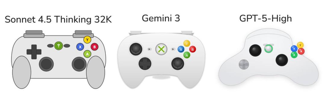 同一个提示——生成Xbox 360手柄的SVG图像,Gemini 3.0更贴近真实效果。