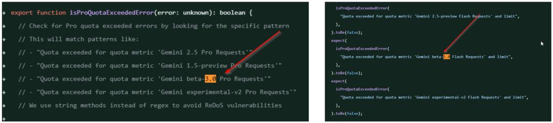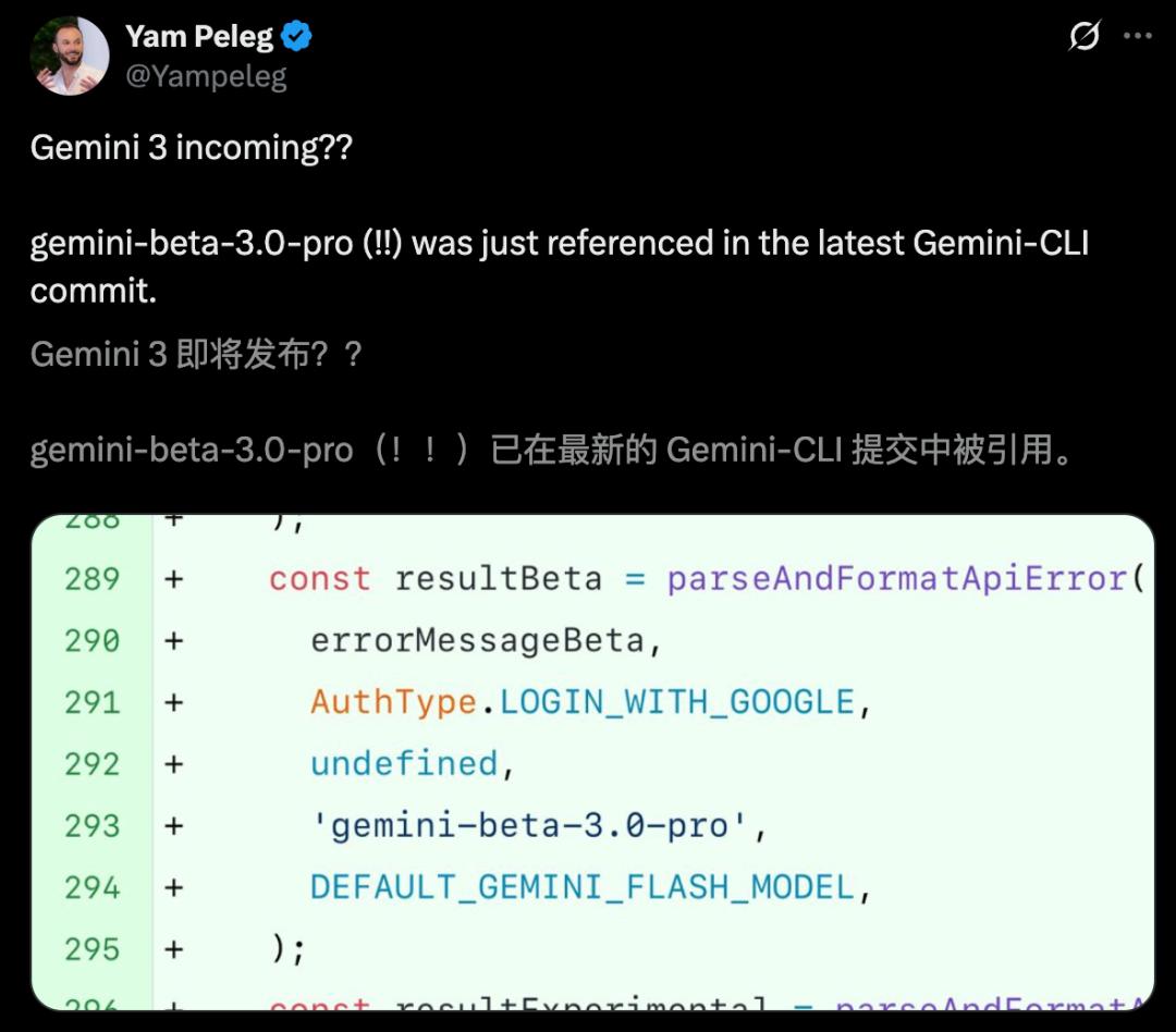 目前,gemini-beta-3.0-pro已在最新的Gemini-CLI提交中被引用。