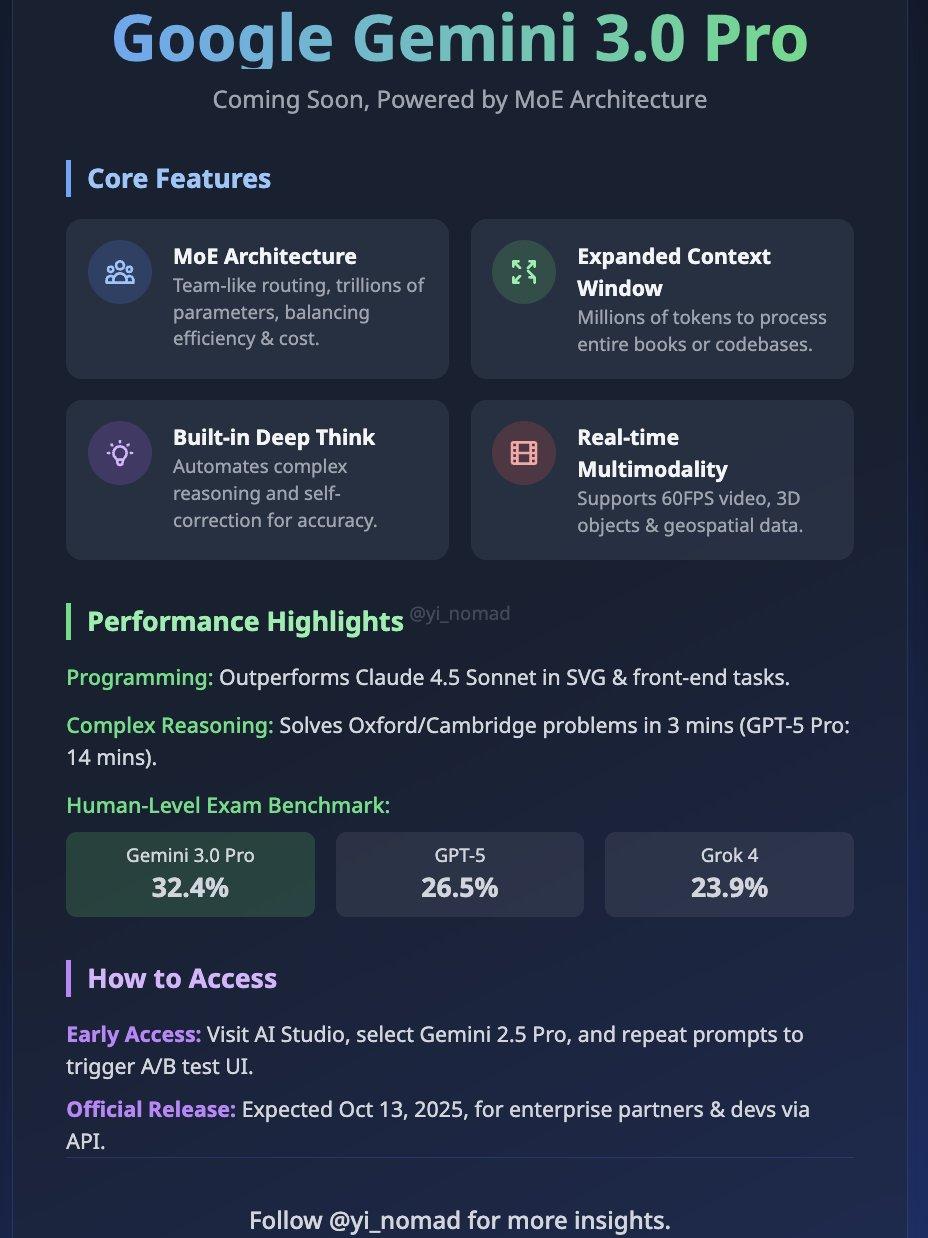 传闻称,预计10月22日,Gemini 3.0就要出世了!