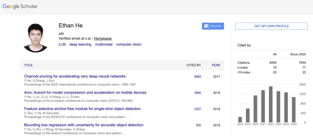 Ethan He,本科毕业于西安交通大学,而后前往CMU攻读计算机视觉的硕士学位,最后满绩毕业。