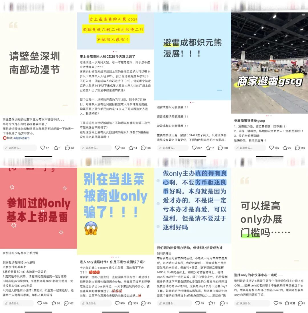 另一方面,结合资深爱好者、展会策划等人群的分享来看,一个显著的趋势正在出现:试图复制头部模式的腰尾部综合展会、同人ONLY展会的数量虽在迅速增多,但实际效果却参差不齐。许多新入局的公司在缺乏核心资源与社区基因的情况下,往往效果不佳。