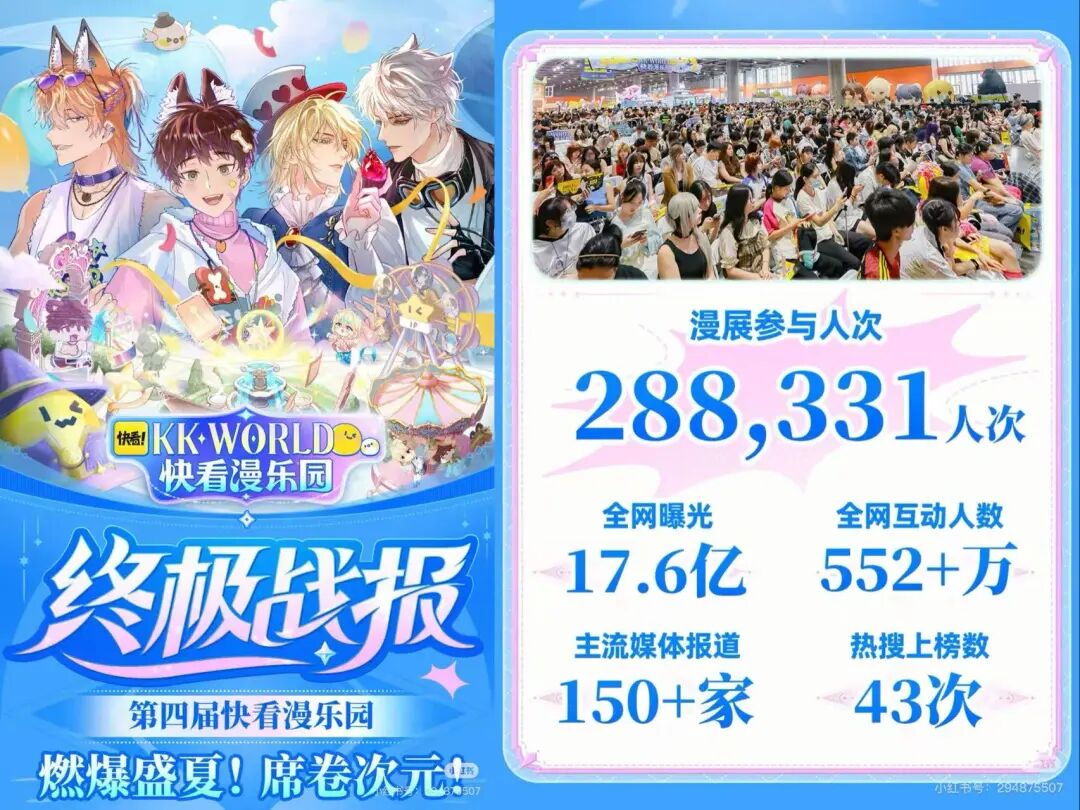 其他头部漫展方面,后起之秀快看漫画KKWORLD深耕国漫垂直领域,今年暑期展凭借超100个国漫IP吸引了近29万人次观展,仅门票收入预估就超千万元。