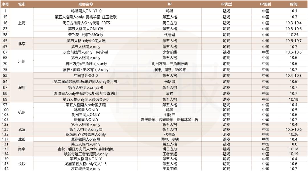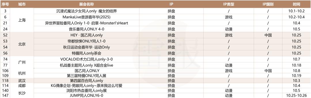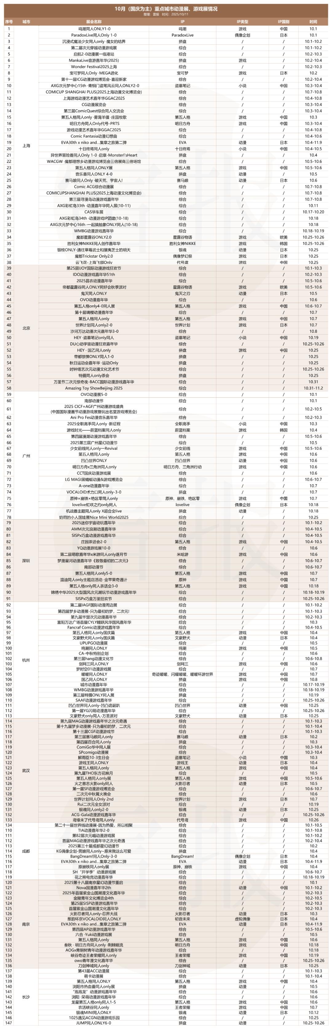 从IP类型看,游戏IP以压倒性优势成为绝对主角,2025年国庆期间,在九大城市举办的展会中,游戏IP独占41场,远超动漫IP的22场。