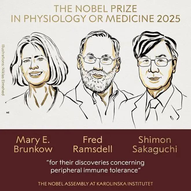 这项诺奖授予免疫学家玛丽·布伦科、弗雷德·拉姆斯德尔与坂口志文,以表彰他们对“外周免疫耐受机制”的突破性发现。评奖委员会指出,三位科学家对调节性T细胞(Regulatory T cells,Treg)的发现与研究,“揭示了免疫系统避免攻击自身组织的关键机制”,这不仅革新了免疫学基础理论,也为理解皮肤健康与衰老提供了全新的科学视角。