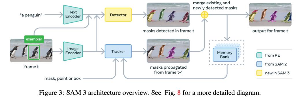 主要是在检测与分割模块上,SAM 3的检测器基于DETR(Deformable Transformer)架构,能够根据语言和视觉提示生成实例级的检测结果。