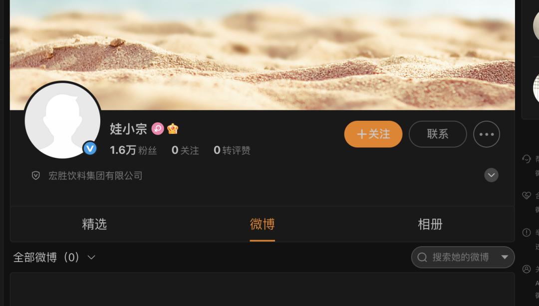 随后,娃小宗的官方微博就已经建立起来。截止发稿,在0内容的情况下,粉丝已达1.6w。