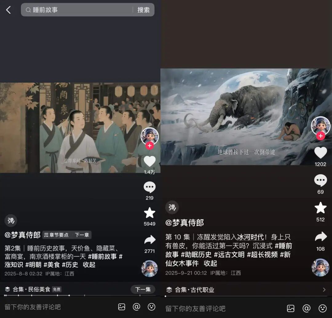 从技术和账号运营的角度看,AI历史长视频是一个非常讨巧的选择。知识科普配合白噪音,本身是为了营造“氛围感”,观众的核心需求也并不是追求影视级画质,而是为了放松入睡。