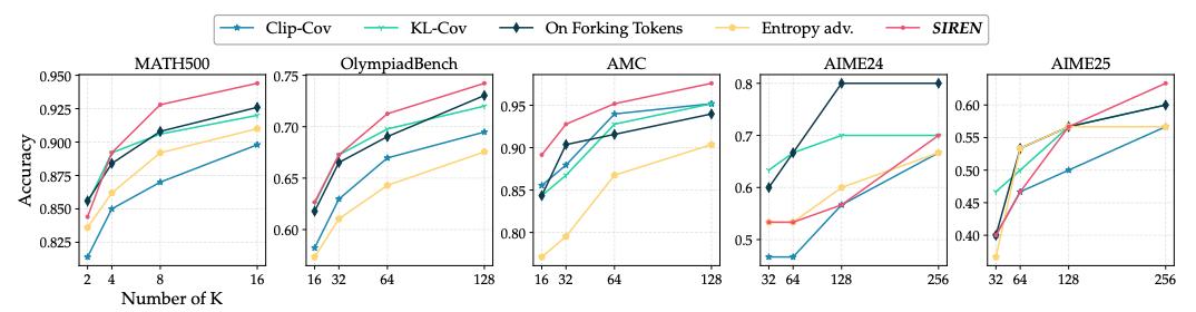 下图中,SIREN展现出较高的pass@k,探索边界显著扩展: