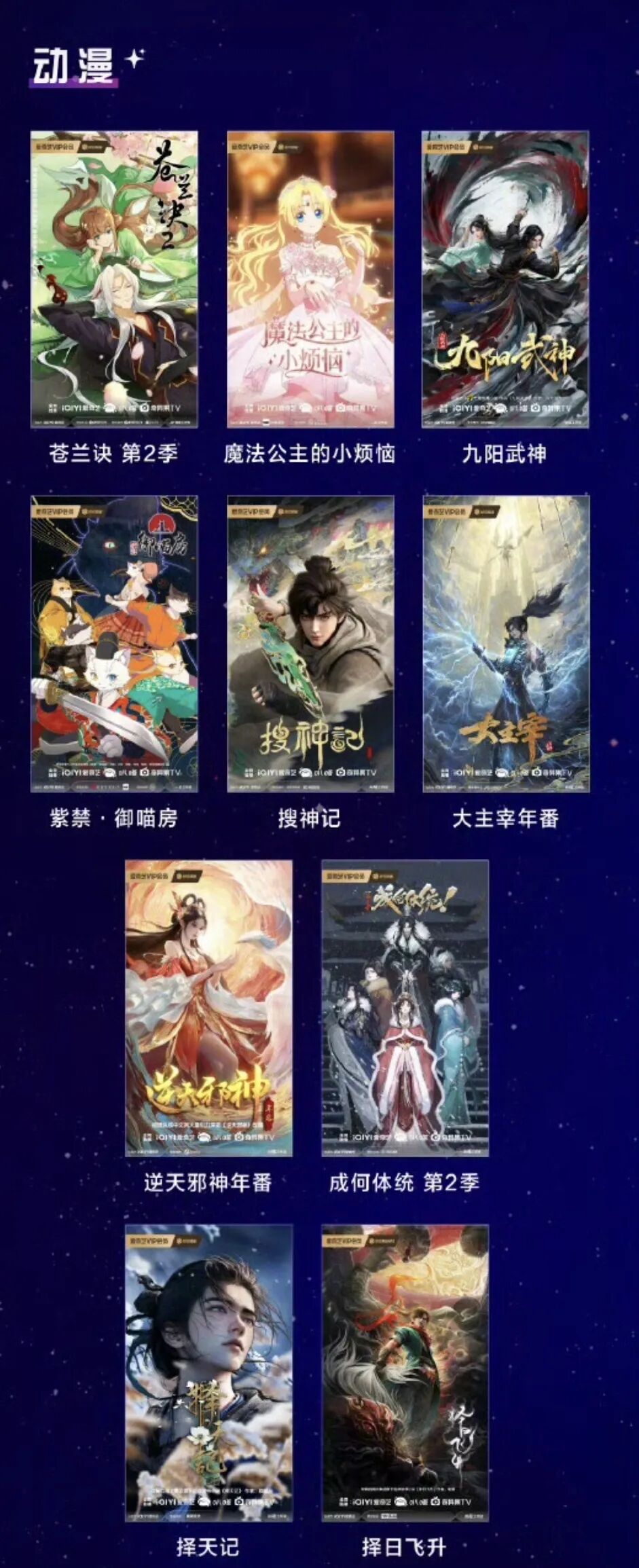 此外,改编自天蚕土豆的《万相之王》、改编自猫腻的《间客》、改编自著名漫画家黄玉郎的《天子传奇》、改编自周星驰经典电影的《食神》也将陆续上线。自有IP扩容、经典IP联动加之作家宇宙共建,让爱奇艺得以整合多方面资源快速建立工业化生产体系,保障动漫矩阵稳定输出。