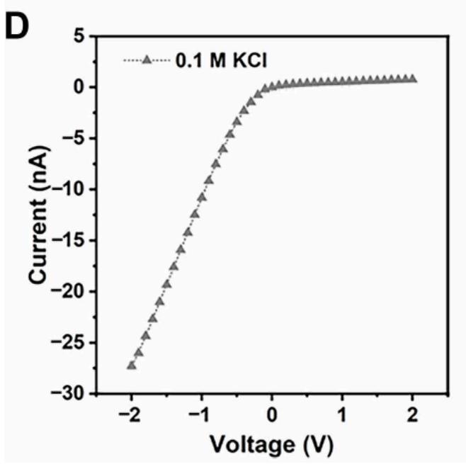 这其实就是看在施加不同电压时,有多少离子电流能够通过MOF孔道。