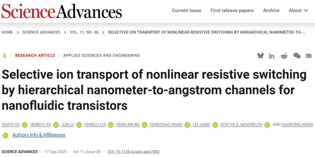 这项成果发表在2025年9月的Science子刊Science Advances杂志上。