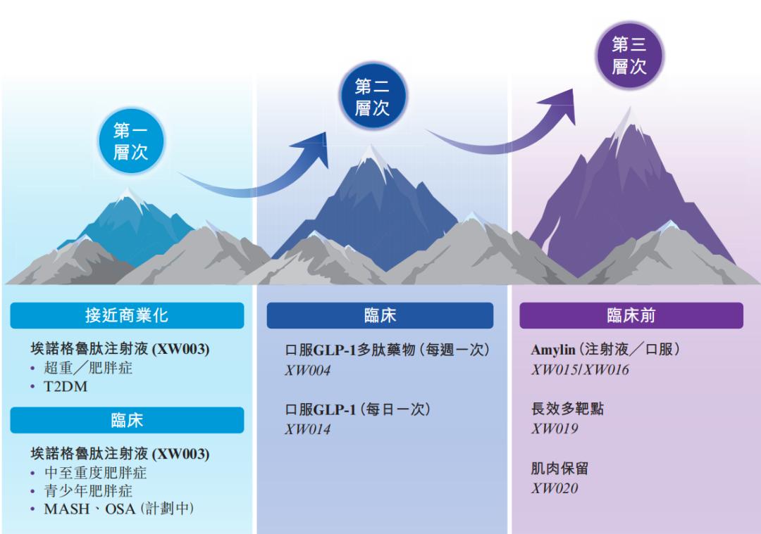 埃诺格鲁肽只是先为达减重版图中的一角。面对巨大的减肥药市场,先为达生物选择“ALL IN”减肥药。公司还布局了每周服用一次的口服偏向型GLP-1多肽药物XW004,目前,这款产品正处于2期临床阶段。口服减肥药研发难度高,礼来在研的口服减肥药Orforglipron效果不及预期,辉瑞也放弃了口服减肥药的研发。先为达的XW004开发难度也不会小。