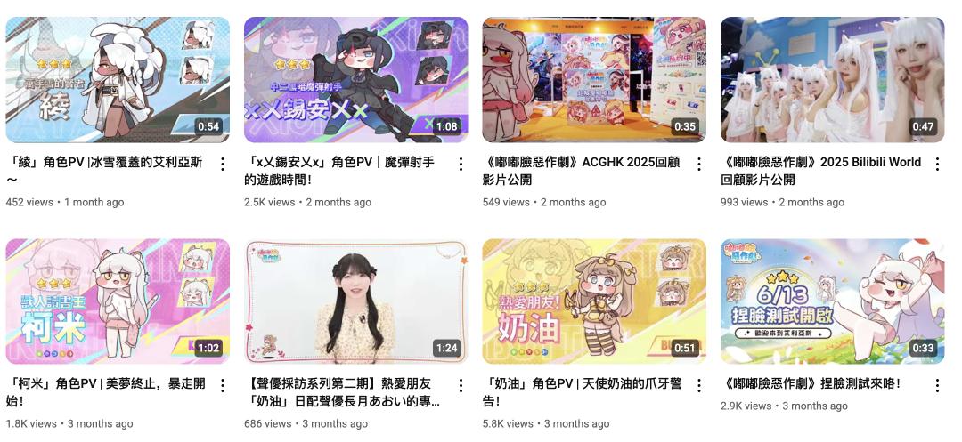 在Youtube平台,主要是发布CosPlay嘟嘟脸角色的真人视频、声优采访实录以及游戏角色相关介绍。