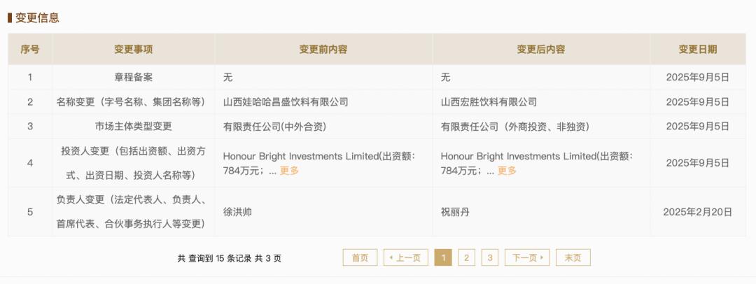 宏胜系弃用娃哈哈商标后,不仅密集申请45件“娃小宗”商标布局全品类,更推动北京、黑龙江等14个市场的经销商变更合作主体至宏胜体系;