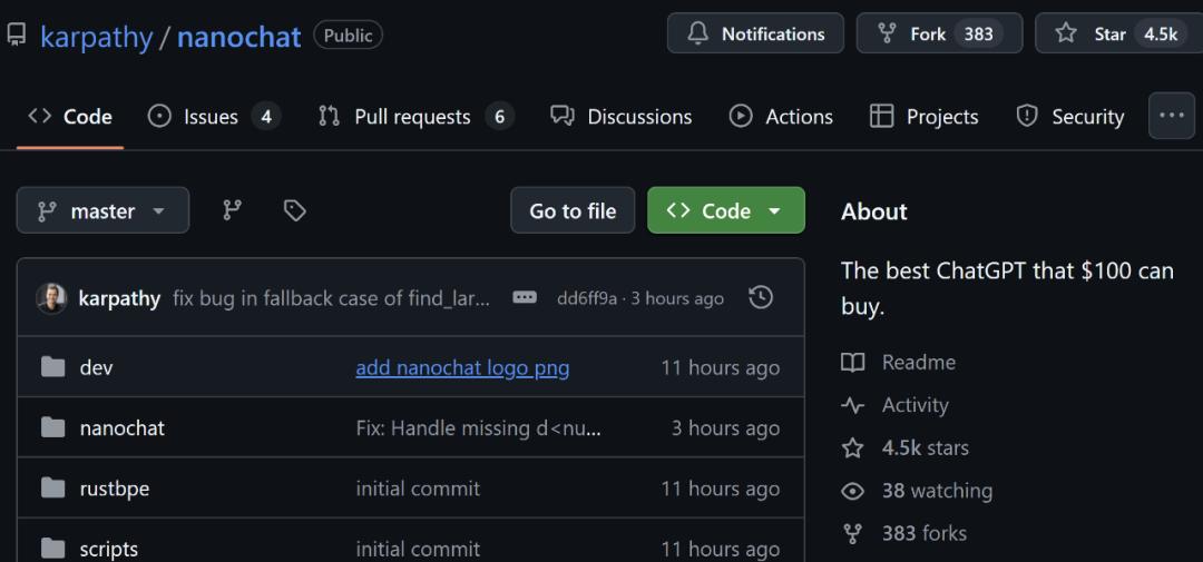 100美元、8000行代码手搓ChatGPT,Karpathy最新开源项目爆火,一夜近5k star