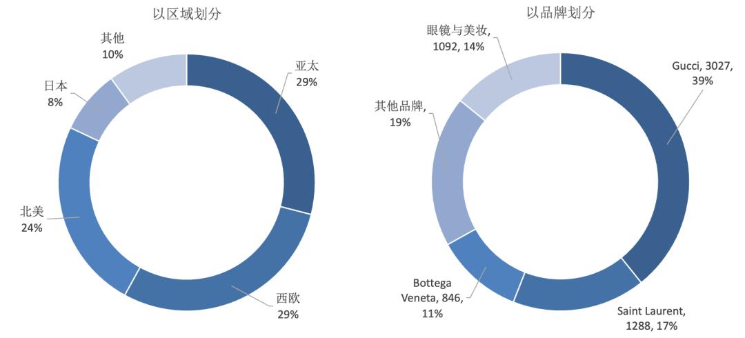 与此同时,核心品牌Saint Laurent同期可比口径收入同比下滑10%,其他品牌可比口径收入同比下滑14%。核心品牌中,只有Bottega Veneta同期的可比口径同比为正增长,但也仅有2%,而且BV在同期的收入占比约11%;眼镜&美妆同期可比口径同比增长3%。