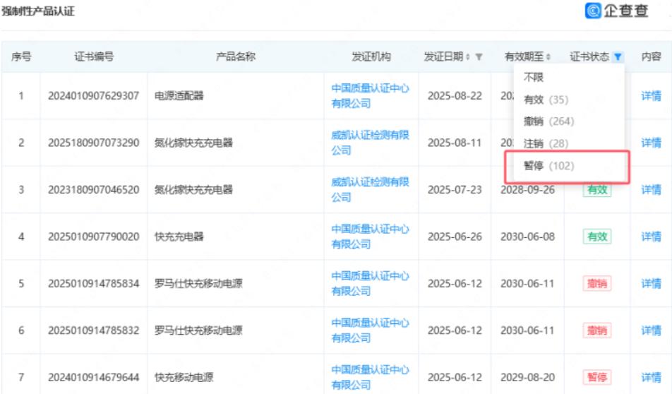 罗马仕多个快充移动电源3C证书状态变更为“撤销”