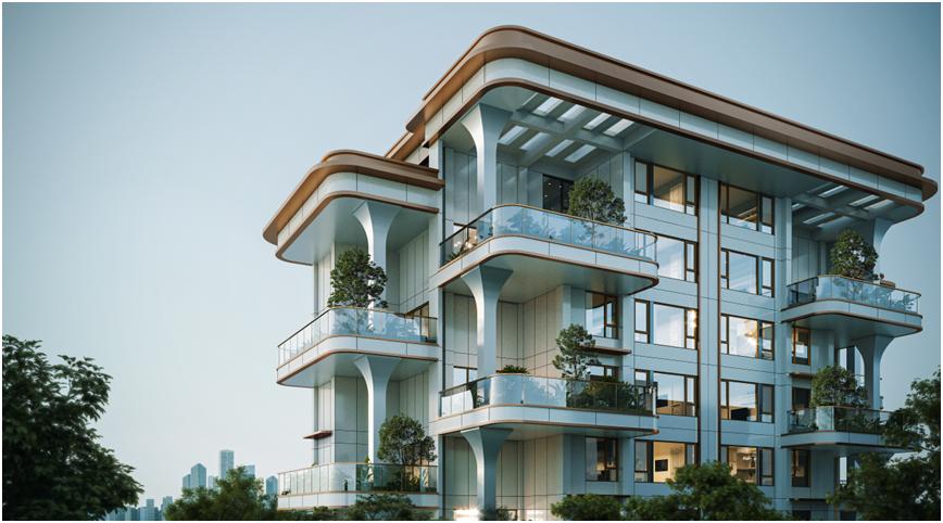 这种布局既能保证每户的大面宽采光效果,又能避免上下楼住户之间的露台互相对视,有效提升隐私性。