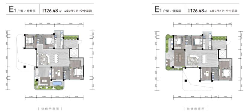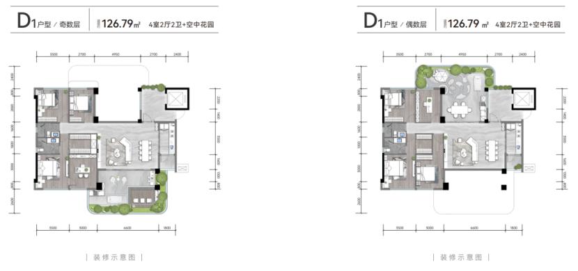 现在很多四代宅户型,都是环绕客餐厅进行设计,这样可以与公区产生更好的互动性,也可以将空中花园作为第二客厅来使用。