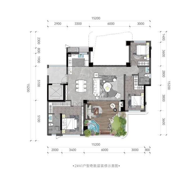 例如保利某项目建面约125㎡奇数层户型,北向露台面宽约8米, 面积约15㎡ , 南向露台面积约12㎡ ,加起来共有27平米。南向露台成为主卧的休闲空间,私密性较强,大大提升了主卧的舒适性。