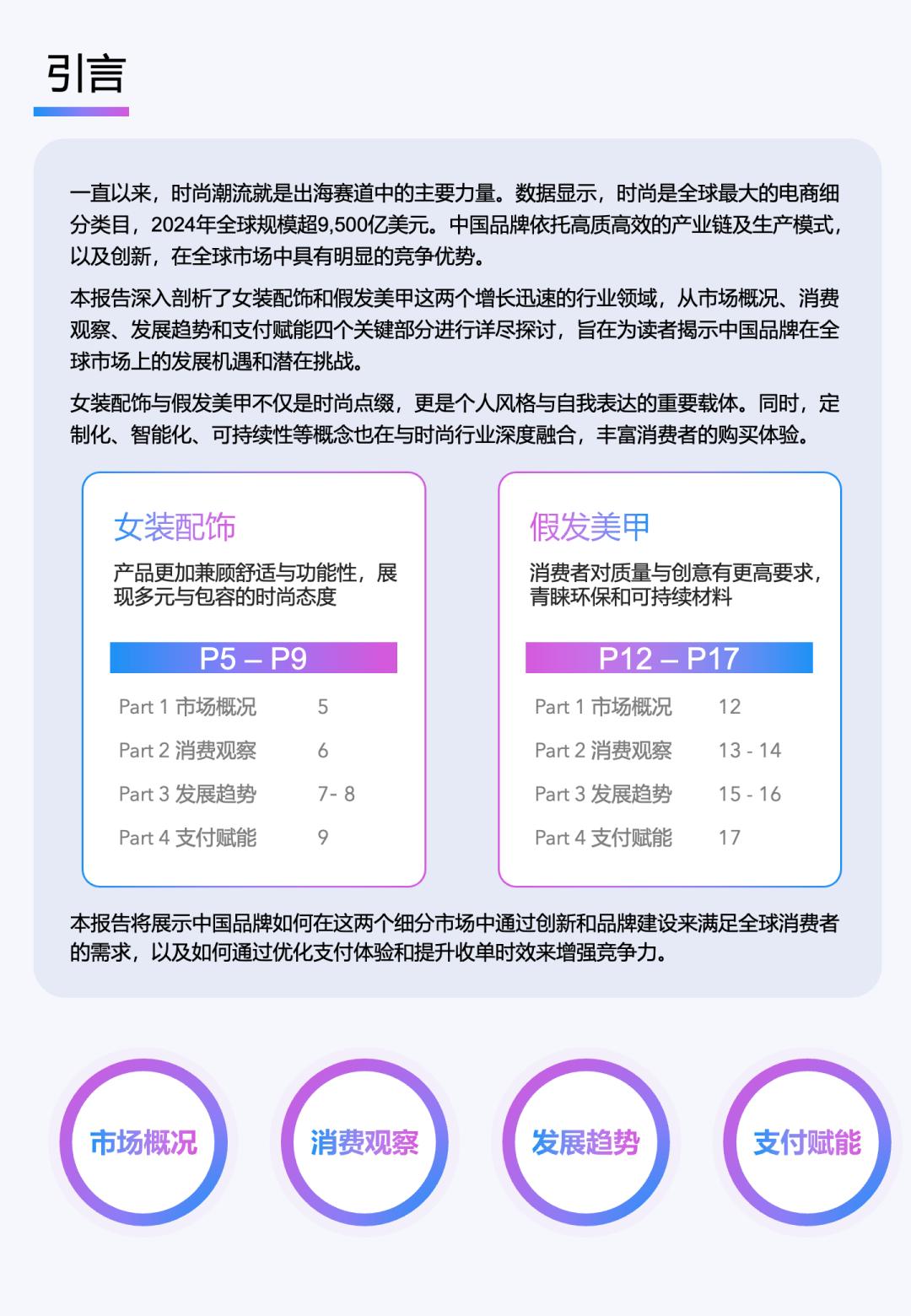 近日,跨境支付公司 Payoneer 派安盈与36氪出海联合发布了《“盈” 动全球》女装配饰 & 假发美甲独立站出海报告(以下简称“报告”),以市场概况、消费观察、发展趋势和支付赋能为核心框架,全面呈现全球时尚消费新特征,揭示了中国品牌出海的机遇与挑战。