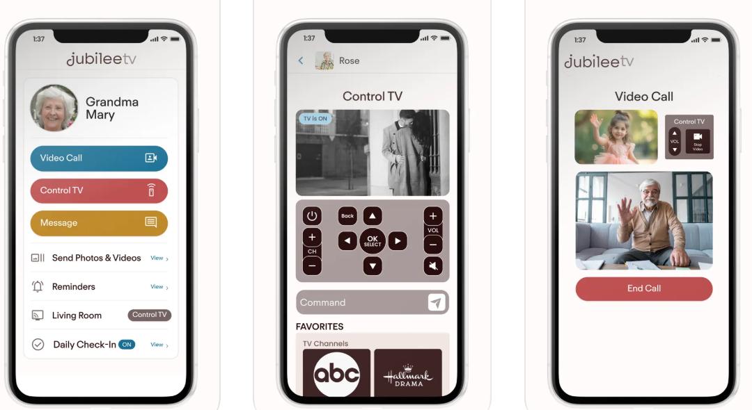 JubileeTV 提供软硬件一体化的机顶盒,将电视改造为极简、大字体的智能平台,简化了频道切换、音量调节、视频通话、照片分享等操作,特别适用于认知能力下降的用户。