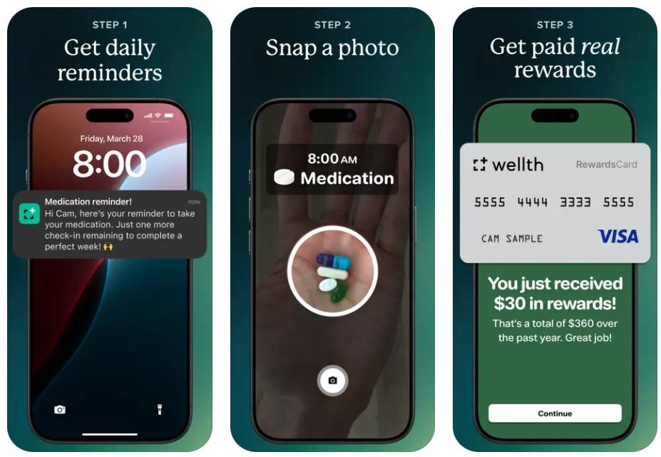 Wellth 巧妙利用芒格曾提到的“损失厌恶”心理:预先给老年患者一笔奖励金,患者每天通过App拍照(如吃药、测血压)打卡来“保住”这笔钱。