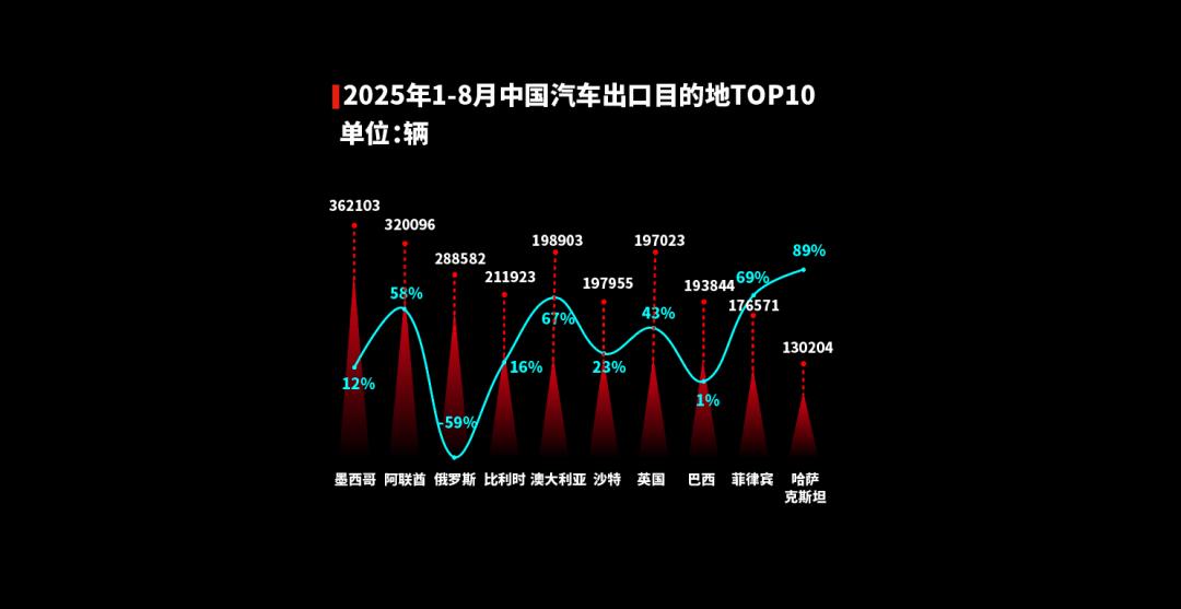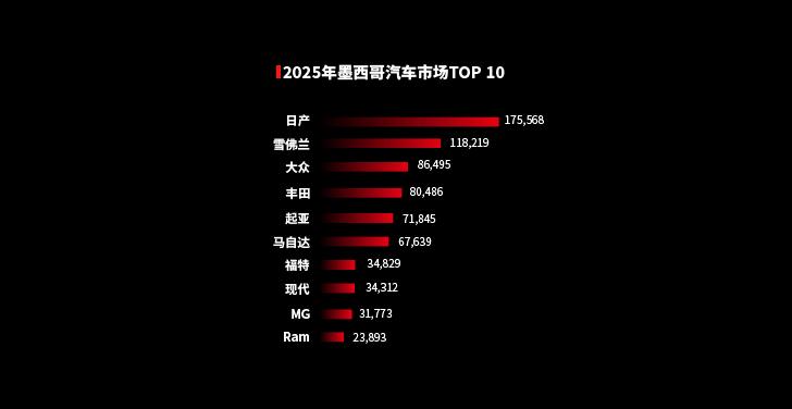 这个地区更加值得关注的其实是墨西哥市场。从出口维度来看,2025年,墨西哥已经超过俄罗斯,成为中国汽车出口第一大市场。当然,这主要和墨西哥特殊的地理位置有关——不少车企把这里作为出口美洲的中转站。