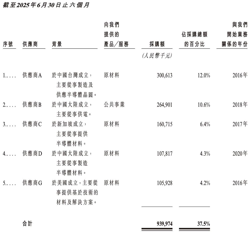 各年度/期间五大供应商的采购额分别占其同期采购总额的37.7%、39.9%、34.9%、37.5%。