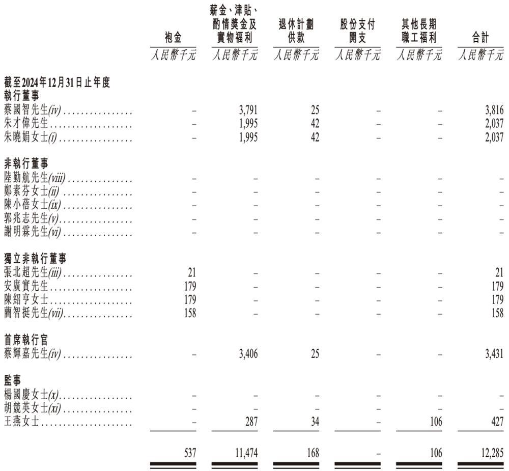 2024年,晶合集成的董事、CEO及监事酬金如下: