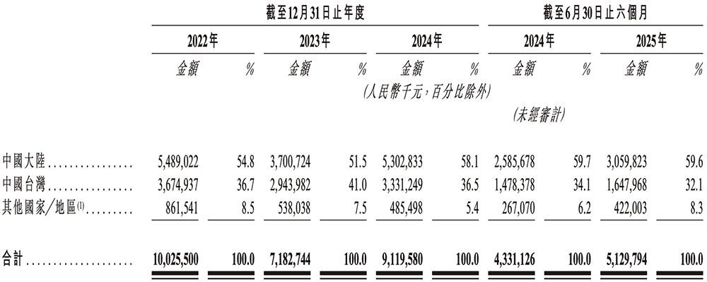 2025年1-6月,中国大陆地区收入占其总收入的59.6%。