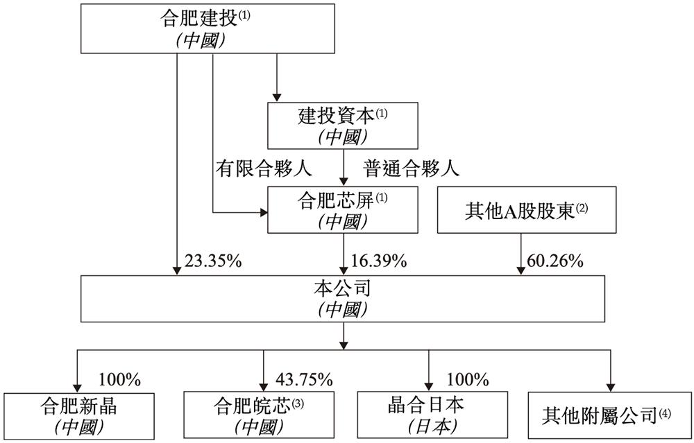 截至最后实际可行日期,合肥国资委旗下合肥建投控制晶合集成已发行股本总额约39.74%,包括直接拥有23.35%及透过合肥芯屏间接拥有16.39%,合肥芯屏的普通合伙人为建投资本,而建投资本则由合肥建投控制。