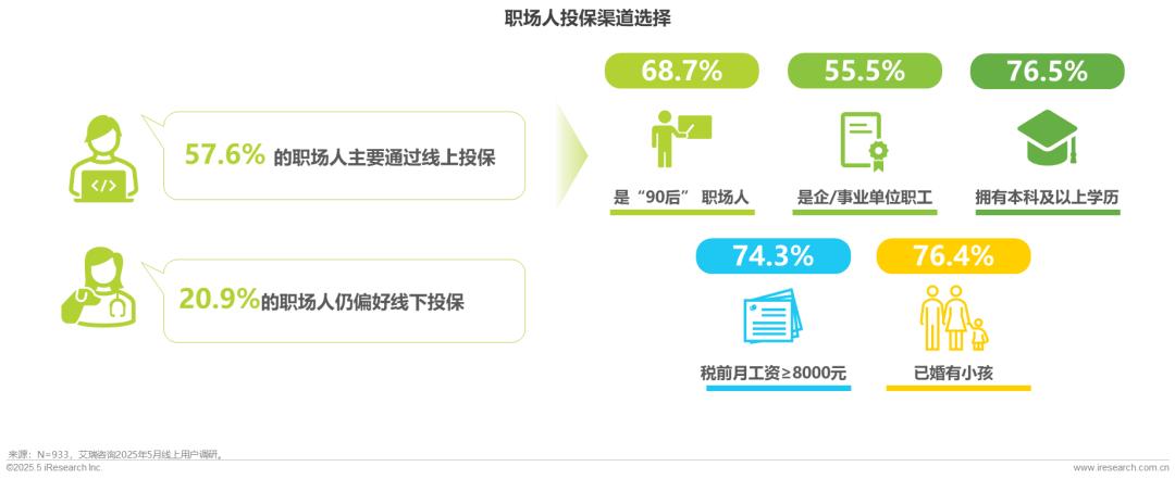 线上投保成职场人主流选择,较高收入及有孩家庭更青睐