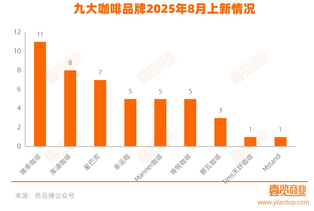 据茶咖观察统计,今年8月,全国门店数量TOP10的咖啡品牌共推出了46款新品,平均每日上新1.5款产品。