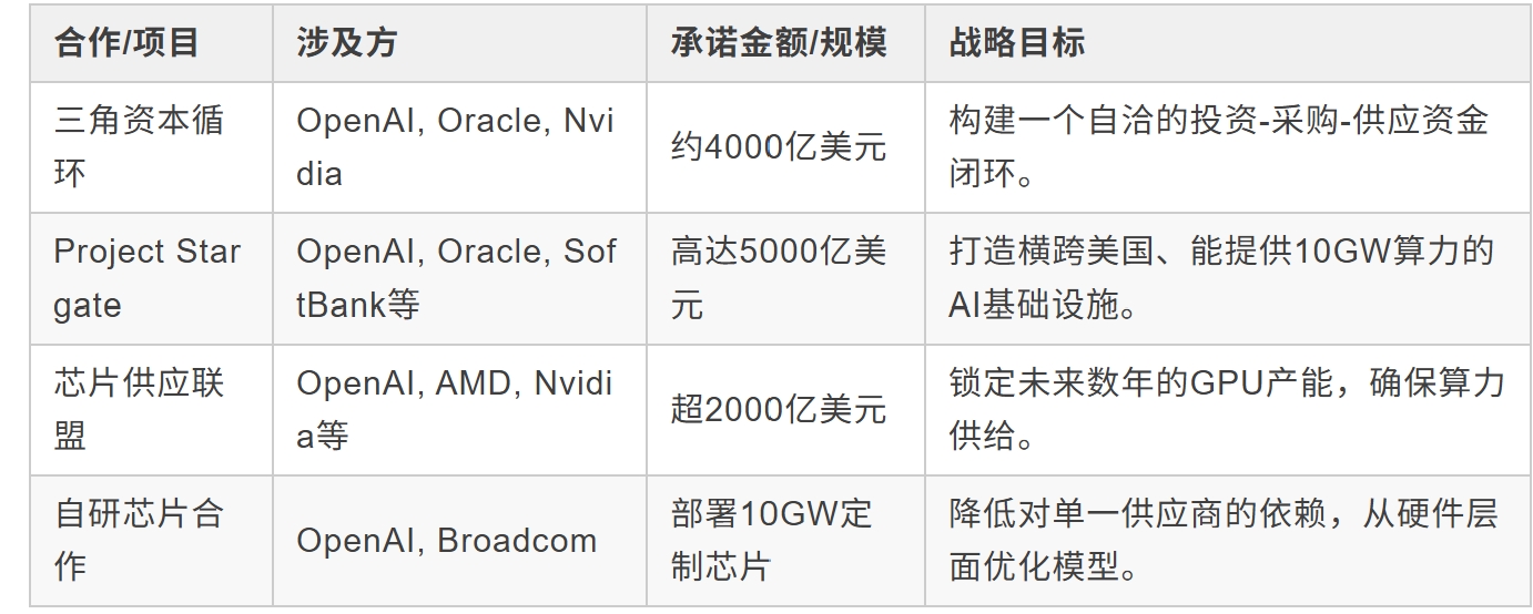 这只是冰山一角。OpenAI的胃口远不止于此,其为未来十年确保算力优势而锁定的投资与采购订单,总额已突破万亿美元。