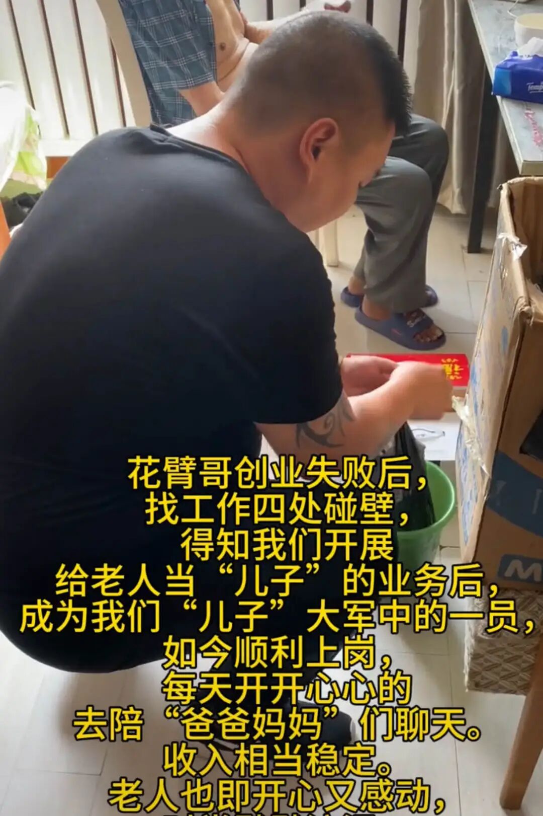 凯哥还接过一单:老两口的儿女都在国外,就算有电话、有寄来的保健品,身边有老伴相互陪着,日子也没比张奶奶强多少——邻居照样会说“孩子远在国外,跟没孩子一样”。