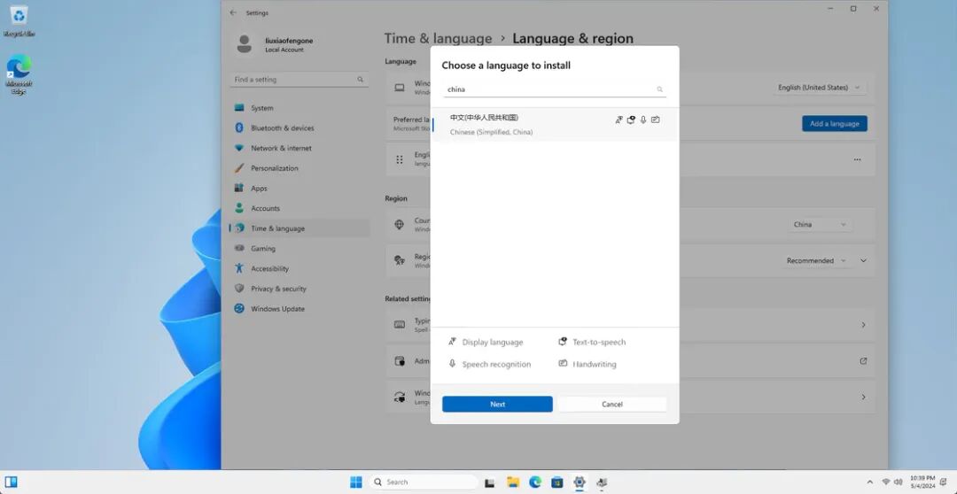 具体流程如下:「Setting」-「Time&language」-「Language®ion」-「Add a language」,在搜索框中输入「China」,选中「中文」并勾选相关选项来等待下载安装后重启即可进入到中文用户界面了。