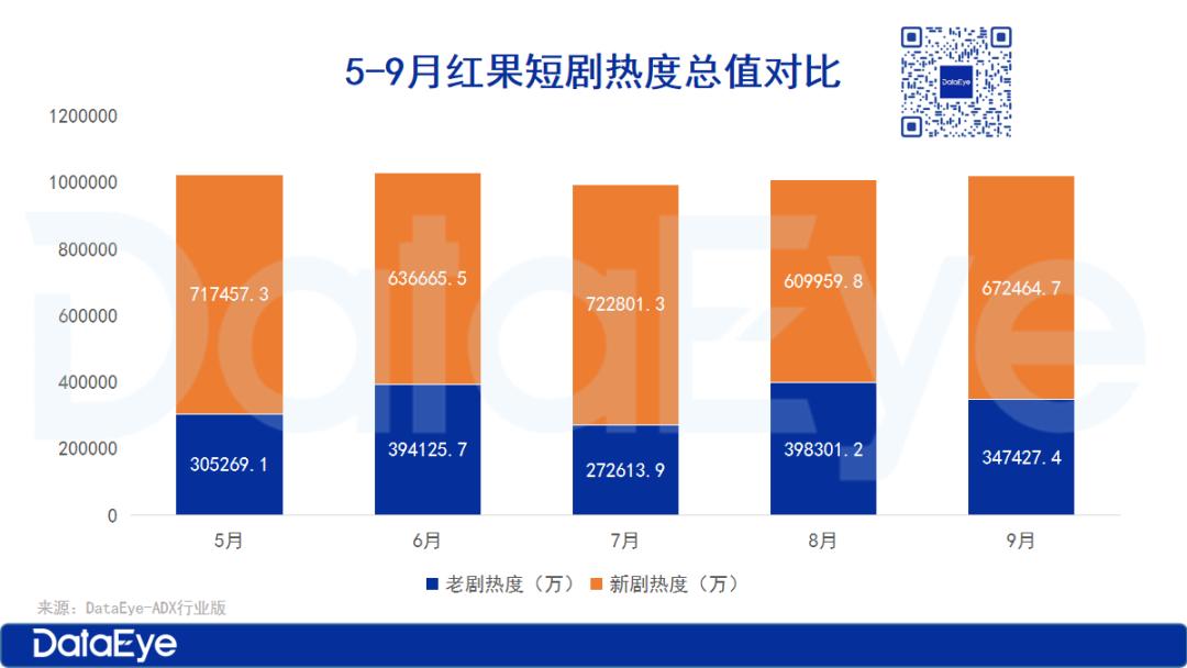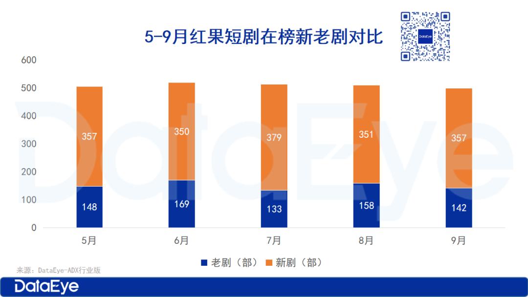 9月,登上过DataEye红果日榜的微短剧数量共499部,其中9月新上线的微短剧占357部,新剧占比达71.54%。在总数方面,变化不大,但在新剧方面较8月,新剧数量有所增加。