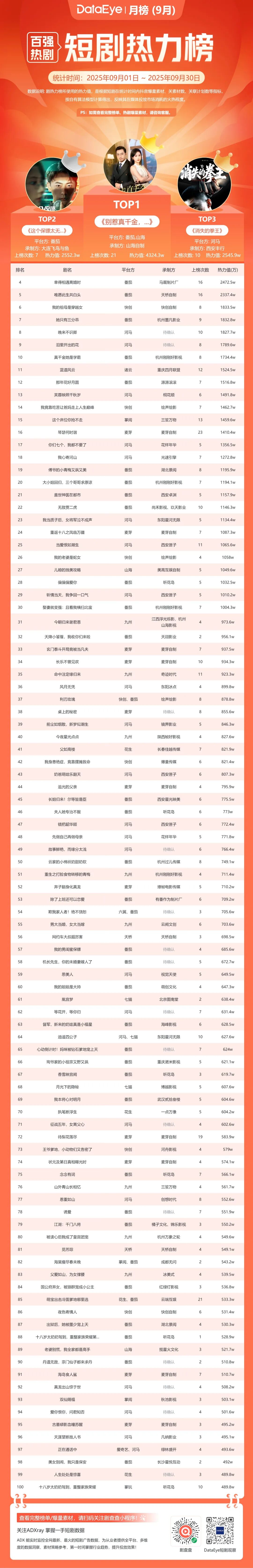 1、9月百强热剧:新剧强势领跑,番茄表现突出