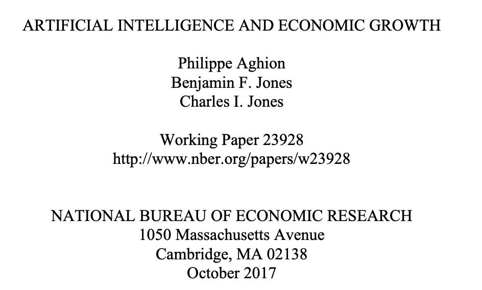谷歌DeepMind的AGI政策开发主管Séb Krier认为,菲利普·阿吉翁(Philippe Aghion)和Benjamin F. Jones, and Charles I. Jones合作的论文非常好。