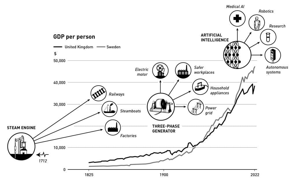 如果把这个模式推广到所有领域,每个研究人员的生产力会永久提升,从而带来永久更快的科技进步速度,这最终直接推动整体经济增长更快。