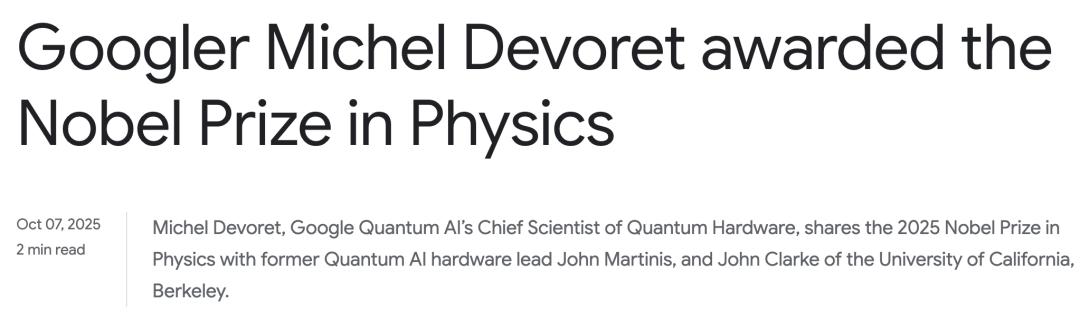 今年,因为量子硬件,谷歌再次斩获诺奖——谷歌量子AI首席量子硬件科学家Michel Devoret获物理奖。