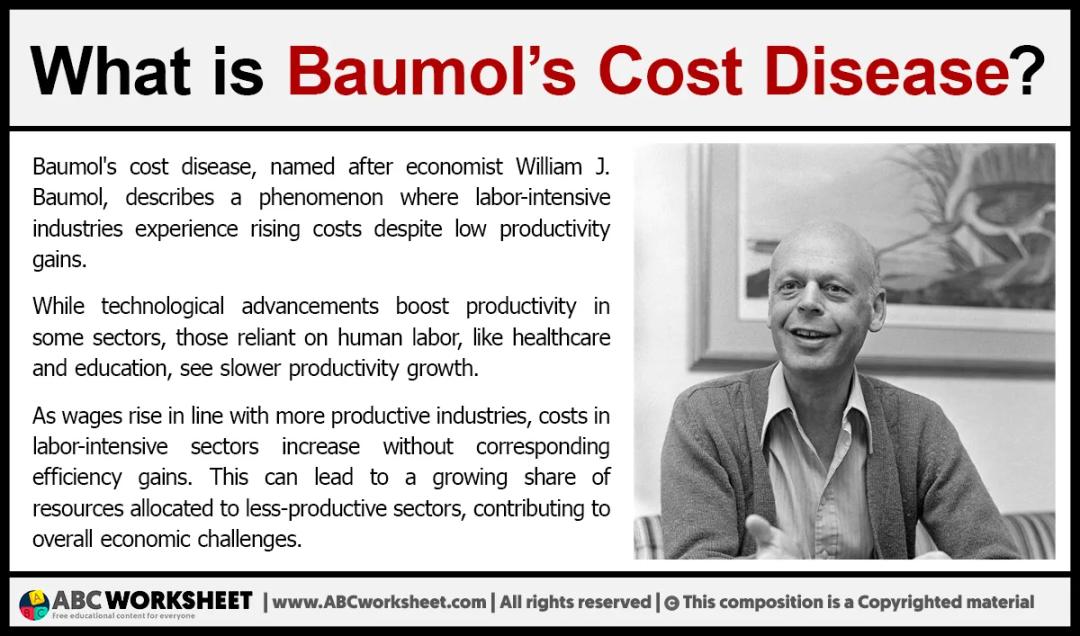 鲍莫尔成本病,以经济学家William J. Baumol的名字命名,描述了一种现象:劳动密集型行业尽管生产率增长缓慢,但成本却不断上升。