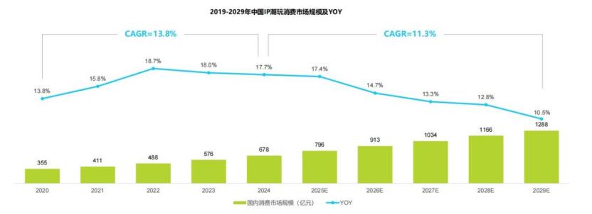 另一方面,年轻人重视的情绪消费、体验消费,仍有大增量。《中国潮玩与动漫产业发展报告(2024)》数据显示,中国潮玩产业总价值预计到2026年将攀升至1101亿元,年均增速超过20%。