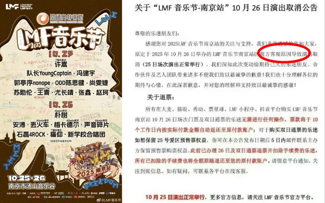 国庆档有多个音乐节取消,有些活动无理由悄声下架。kk看了取消的音乐节活动,譬如山东新青年音乐节、张家界大麓青年音乐节,以及月底的LMF音乐节,发现统一的问题是阵容上没有太多有粉丝基础的嘉宾扛票房,其中LMF在取消活动的公告中表示是因“我方客观原因”。