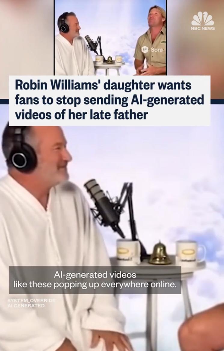 以至于罗宾·威廉姆斯的女儿又开始在社交媒体上发布声明,恳请大家不要再制作关于他父亲的AI视频,可为什么是“又”?