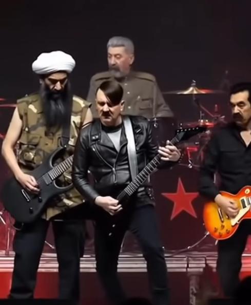 像什么让科比与MJ和2Pac在天堂同框打个照面都算是天使级别的AI生成应用了,真正的地狱用法是让希特勒、本拉登、萨达姆三人组一个重金属乐队,说好的要一辈子组乐队,这下等到全员都上天后,可以实现了。