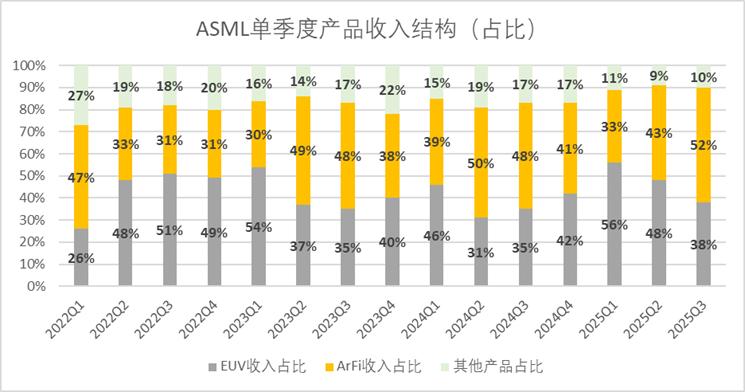 图:ASML单季度产品收入结构趋势,来源:企业财报,锦缎研究院整理