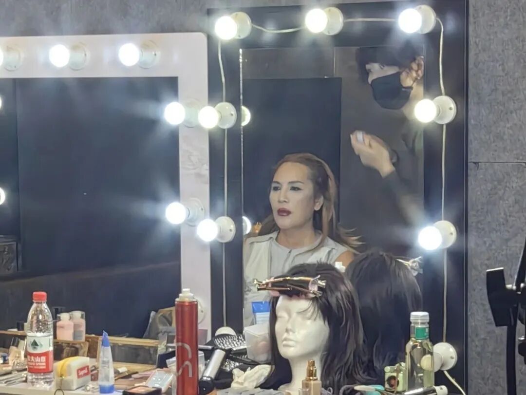 演出后台比想象中更忙乱。《中国企业家》见到那艺娜时是8月底,演出晚上7点半在北京东五环外的“本土王牌LIVE”开始,那艺娜和经纪人张兵下午5点左右赶到现场。凌晨2点才结束了天津的工作,当日白天又完成了《时尚芭莎》杂志拍摄,因此留给妆发的时间只剩两个小时。在这期间,还不断有粉丝、记者过来合影、谈话。直到演出前半小时,她表妹终于开始驱散人群,给了那艺娜吃饭的空当。